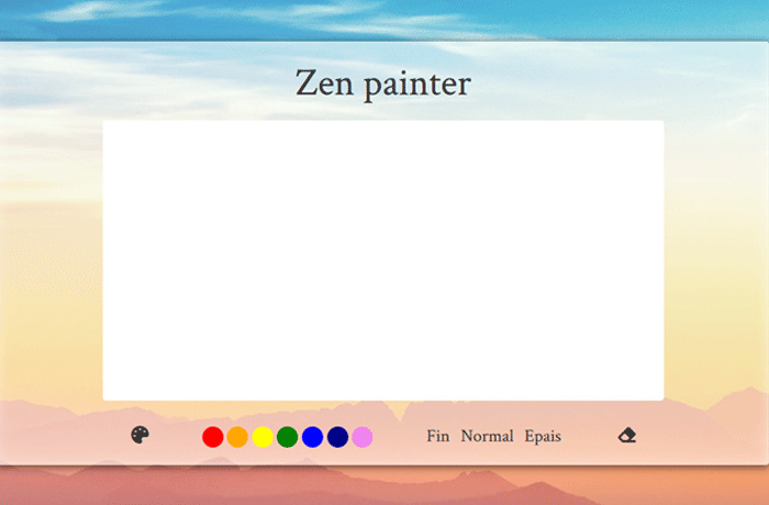 Interface permettant de dessiner avec la souris en variant la taille et la couleur du trait. -desktop only-