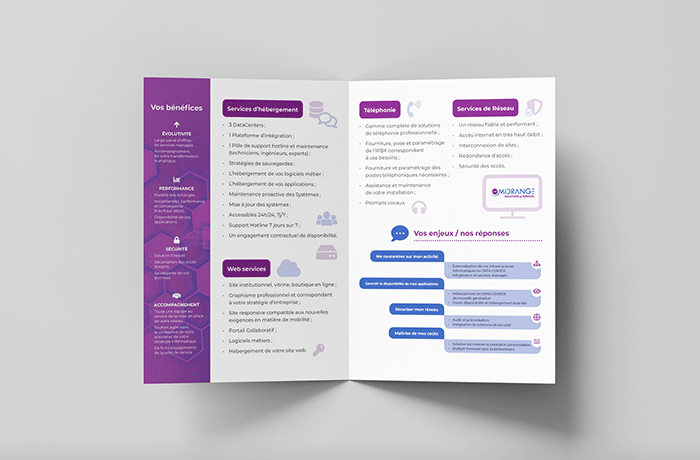 Quelques exemples en mise en page : brochures, cartes de visite, affiches.