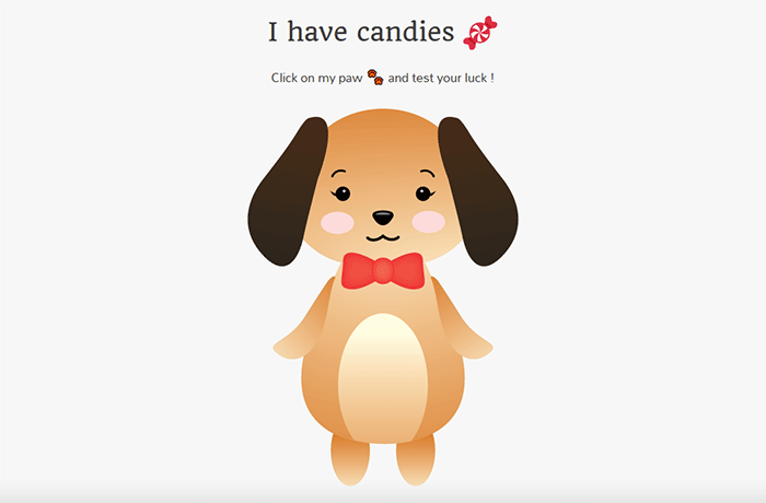 Jeu basé sur le principe de chifoumi - il faut deviner dans quelle patte le chien cache un bonbon.
